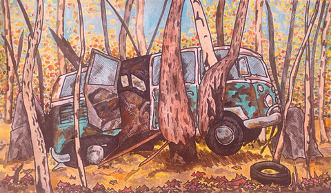 My work is inspired by environmental anthropology, geology, DIY punk culture, my love of all things bikes, and the many places I've been lucky to call home, mainly Appalachia, the Deep South, the Southwest, NYC, and Mexico City.