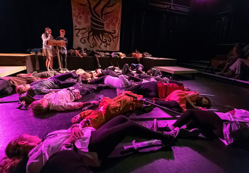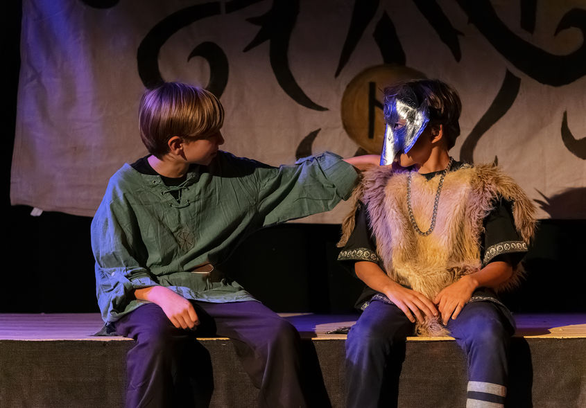 This extremely minimalistic set was designed to reflect the "school book report" nature of the show. The main set feature was a 9'x12' Nordic "tree of life," with lighting and sound being the main methods for establishing different moods and world changes.
